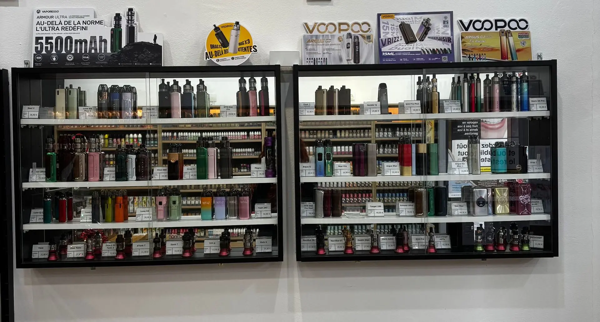 - Matériel : Les dernières nouveautés GeekVape, Vaporesso, Voopoo et bien d'autres, mises en avant sur nos nouveaux présentoirs pour une visibilité parfaite.